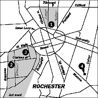 What caused it?Historians point to many causes for the violence that erupted 30 years ago this July. The most significant was probably the failure of the community to adjust both infrastructure and attitudes to a sudden increase in black population after World War II. Although Rochester had long had a small black community, in the 10 years from 1954- 64 the size nearly tripled from 9,000 to 26,000 as a result of heavy migration from southern states. The Rochester economy was not prepared to deal with the influx, particularly in employment and housing. Black unemployment soared, and the supply of public housing fell well short of demand. Both of these problems were exacerbated by racism and prejudice. In the eyes of blacks, a white community known for its smugness, failed to see the growing crisis. At that time Rochester's major industries had no affirmative action programs and some even refused to hire blacks at all. Even well-educated African Americans could not receive positions commensurate with their training. Efforts to build public housing in the outlying towns of Monroe County were met with fierce public resistance. African Americans remained crowded into two city neighborhoods in the city's Third and Seventh Wards. In the northeast section, Hanover Houses, completed as a model of public housing in 1949, had slowly deteriorated into an asphalt jungle. With 392 units crowded into seven buildings on a 6-acre site, the area developed a reputation as a center for drug traffic and street crime. Predictably, the 1964 disturbance began in the shadow of those troubled towers. Sen. Jacob Javits, on a tour of the neighborhood after the riots, labeled the Joseph Avenue area some of the worst slums he had ever seen. I know of nothing in New York City that compares with the ramshackle quality and general squalor of these areas. History shows that when a people have no jobs, no housing, and no respect, a rebellion becomes inevitable. Back | Next According to WebCounter