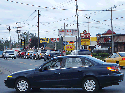 Traffic in Oneida The downtown area is devoid of traffic as shown in the picture below taken at about 5 pm on a weekday. Out on Route 5, however, there is plenty of traffic. See the picture at right taken about 5:30 P.M. on a weekday. The state DOT required the developer who built the new Lowe's to make $1.1 million dollars in improvements to local highways. Rt. 365A at the corner of Rt. 5 now has four lanes.